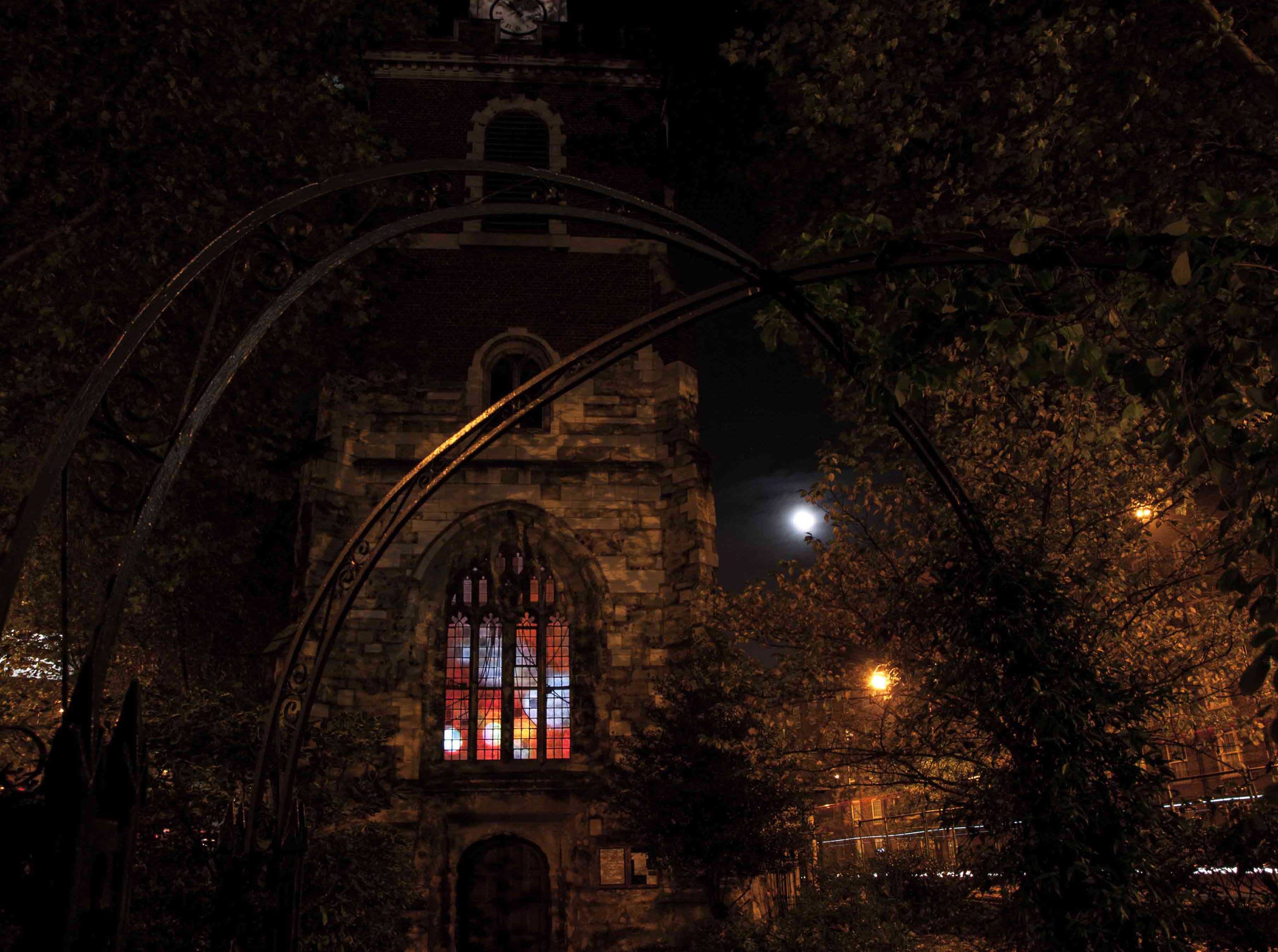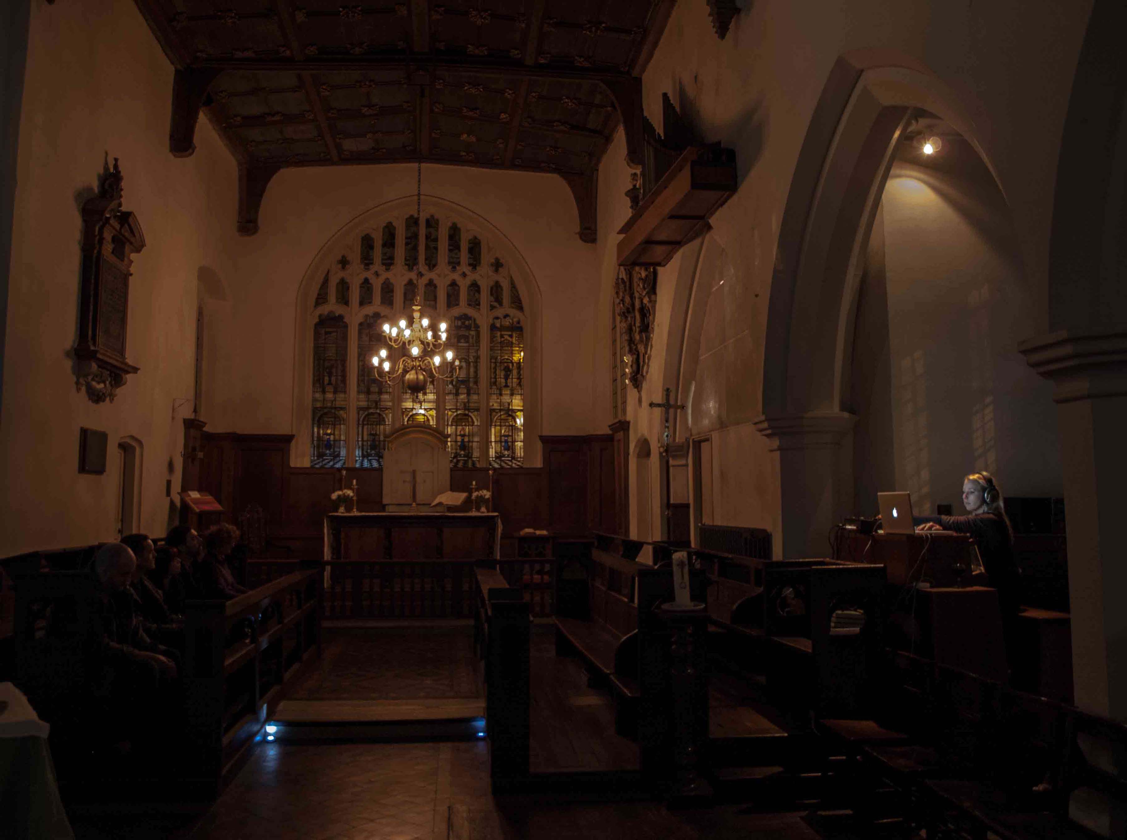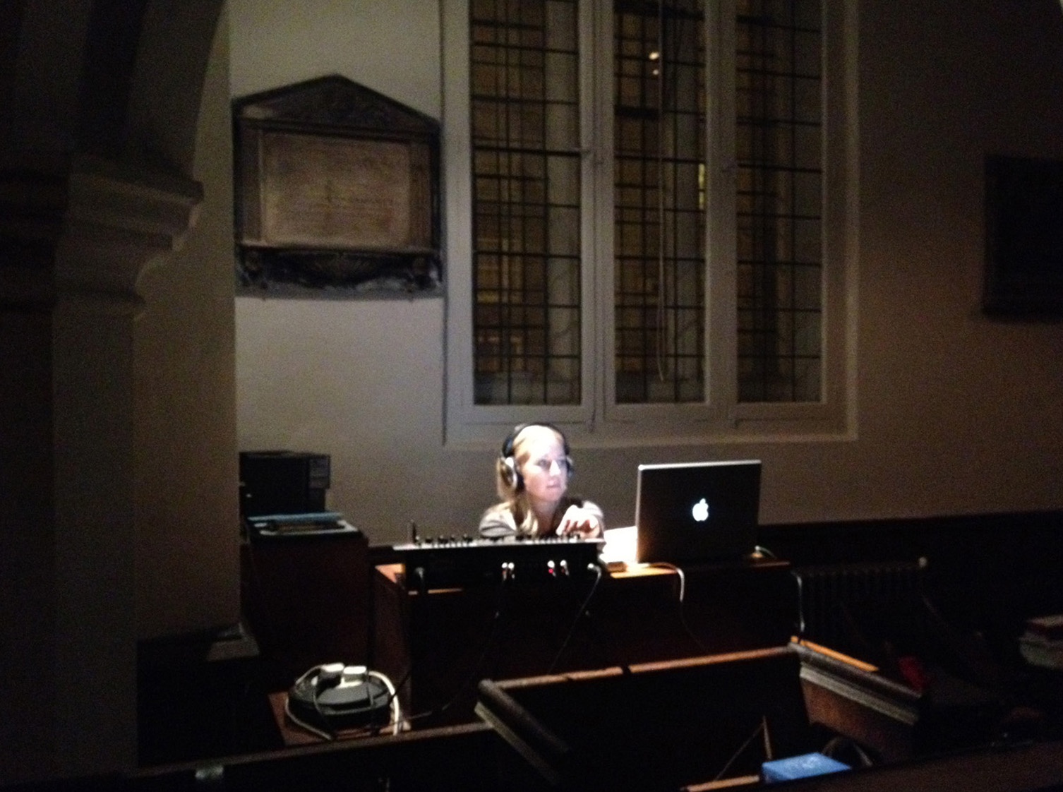 parallel relay is a collaborative project by esther ainsworth and light artist kirsty dixon, utilising and elaborating on the tumultuous history of bow church and the uniqueness of its location, isolated in the centre of a main road. the artists residency was granted by the church to enable both artists to explore the conflict between the overwhelming noise and stress of the road surrounding the church and the serenity and contemplative atmosphere found inside it. parallels are drawn between the omnipotence of current technology and of religion in past centuries. light and sound are manipulated from the surrounding environment of the church and relayed within the building to create a series of events which interpret and transform the space and how it is experienced. esther's site-specific sound work focuses on the placement of bow church, surrounded by a never ceasing flow of traffic. alienated by its location, the church is both a landmark to some and unnoticed by others in the speed of daily commuting. live sound was relayed from both sides of the church, focusing on the movement of the busy main road casting sound into the interior, and resulting in an environment that is shaped by the acoustics of the architecture of church and the fluctuating patterns of the outside world. this evolving, immersive work became the starting point for a series of performances responding to the patterns of the traffic, which also included a church bell ringing and improvisation piece using the the church organ. a full project pdf is available on request from the artist.